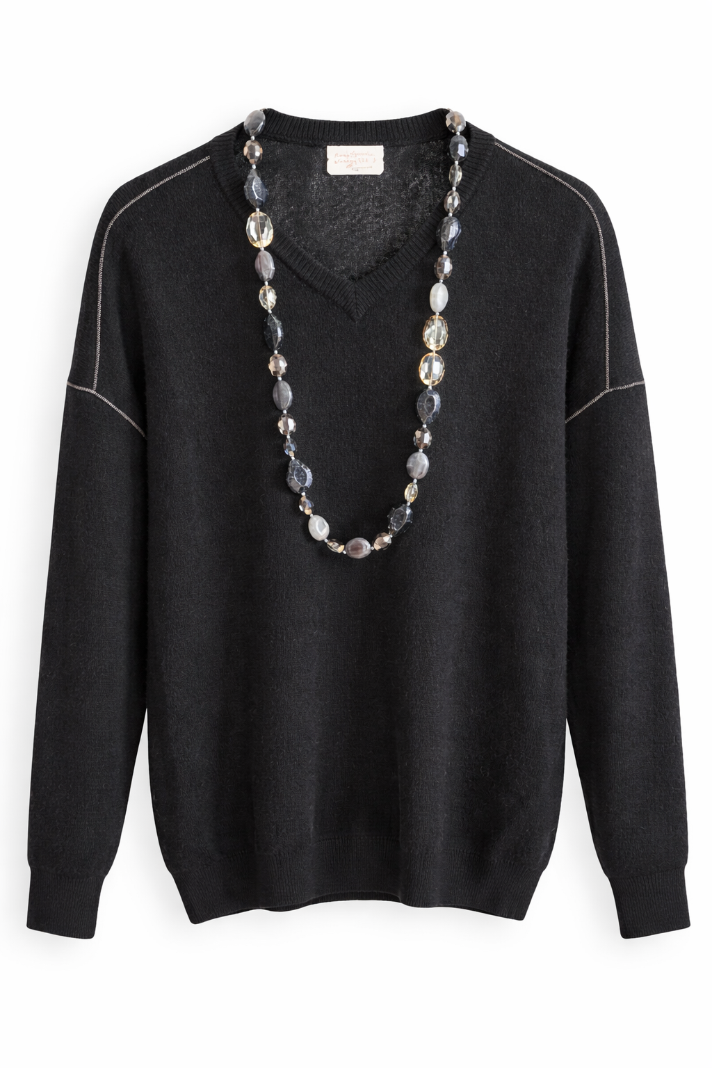 Náhrdelník, ktorý je na fotografii je len dekoračný a nie je súčasťou pulóvra.