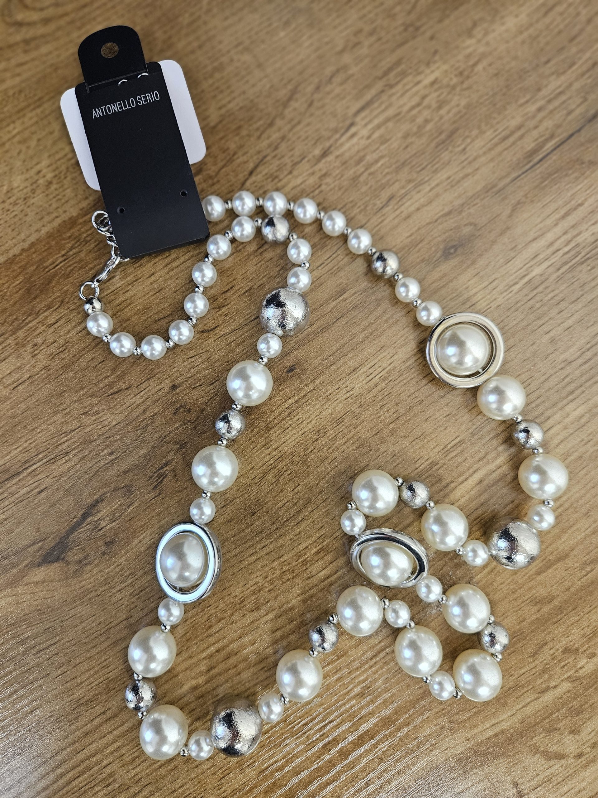 | Bižutéria-perlový náhrdelník | Zloženie : umelé perly bielej farby so striebornými guličkami Rozmery : dĺžka 43cm |