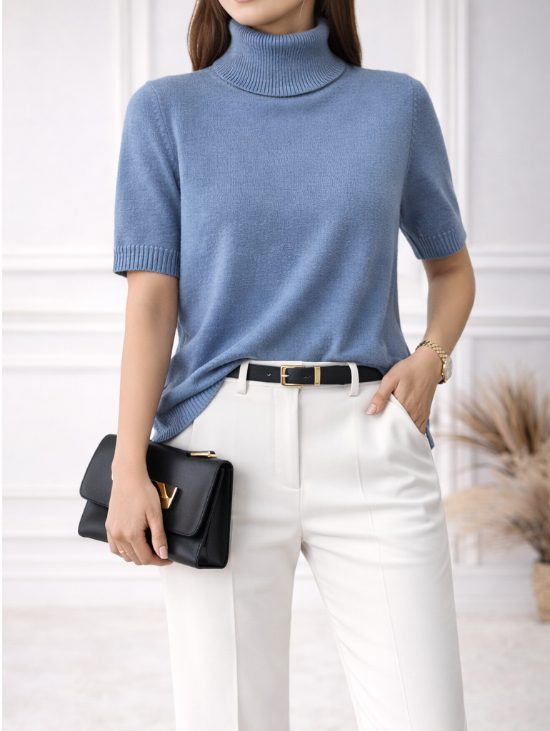 Svetlo modrý rolák s krátkym rukávom-jemná pletenina, pohodlný strih, ideálny na vrstvenie, alebo aj na samostatné nosenie. Vhodný do každého šatníka.