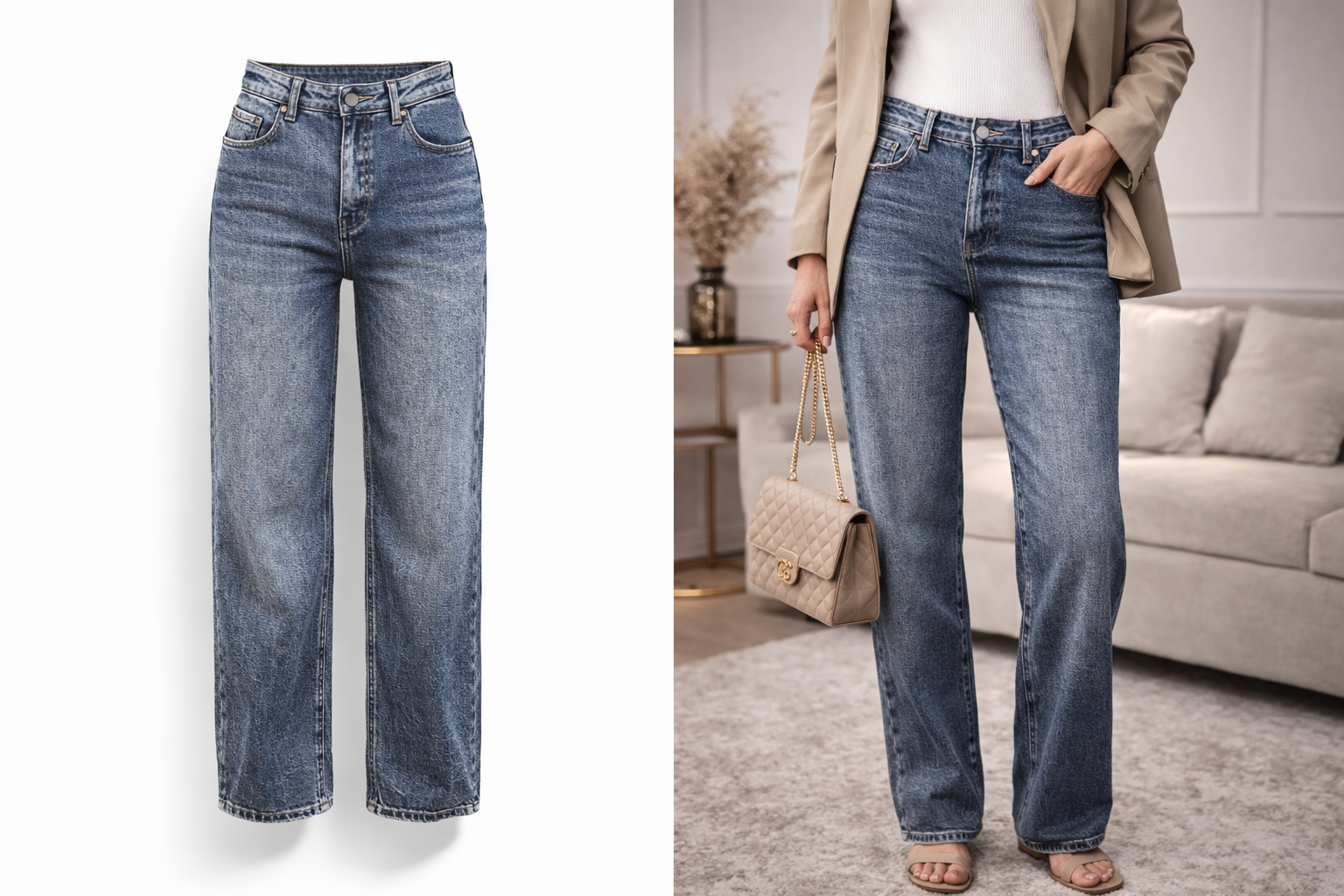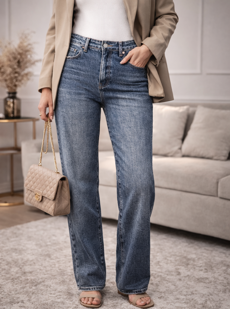 Elegantné tmavomodré rifle v modernom širokom strihu, ktorý krásne predĺži postavu a dodá outfitu ležérny-šik vzhľad. Vďaka príjemnému materiálu s jemnou pružnosťou sa pohodlne nosia a ľahko kombinujú-či už ku košeli, jemnému svetru, alebo obľúbeným teniskám.